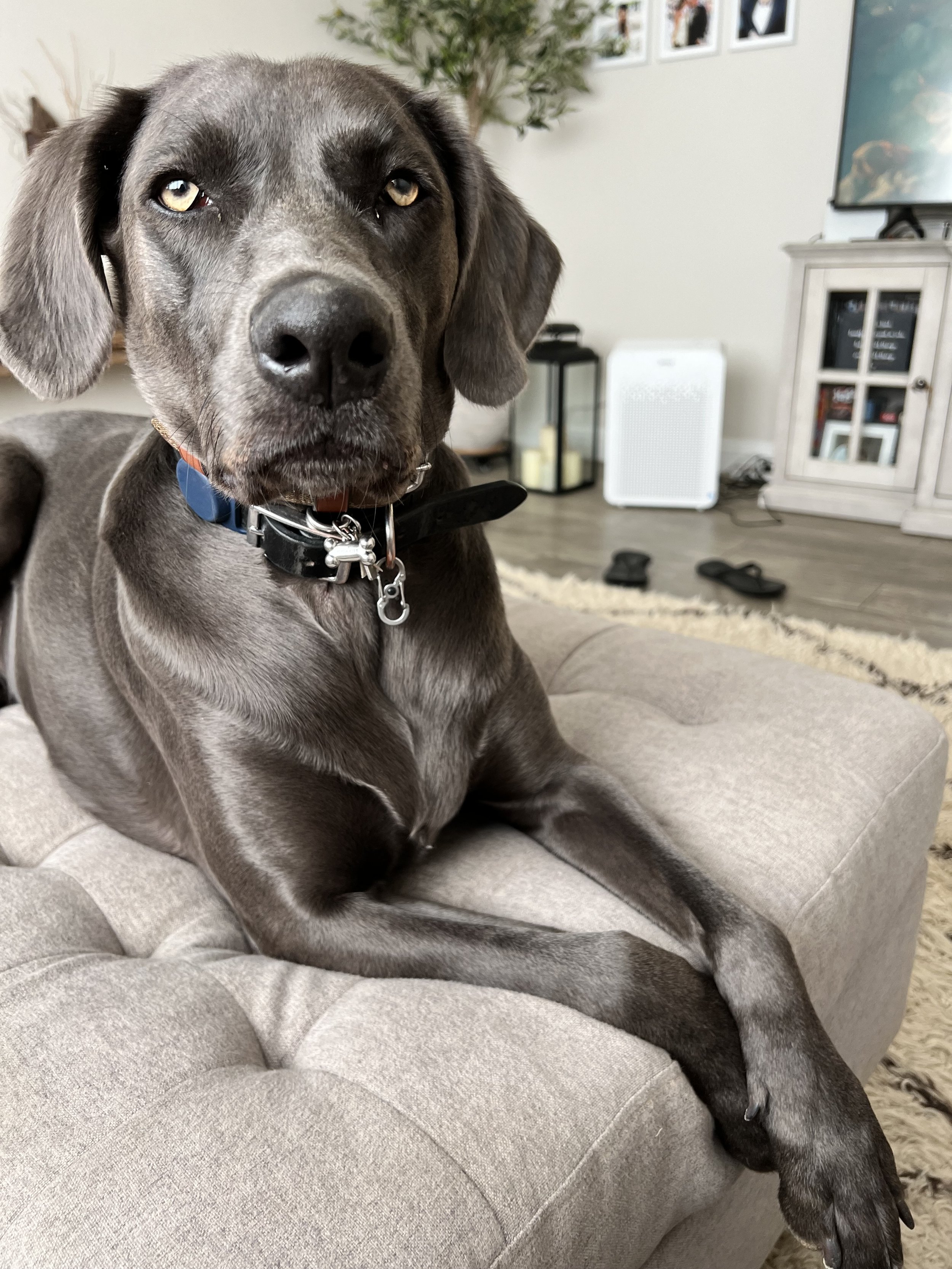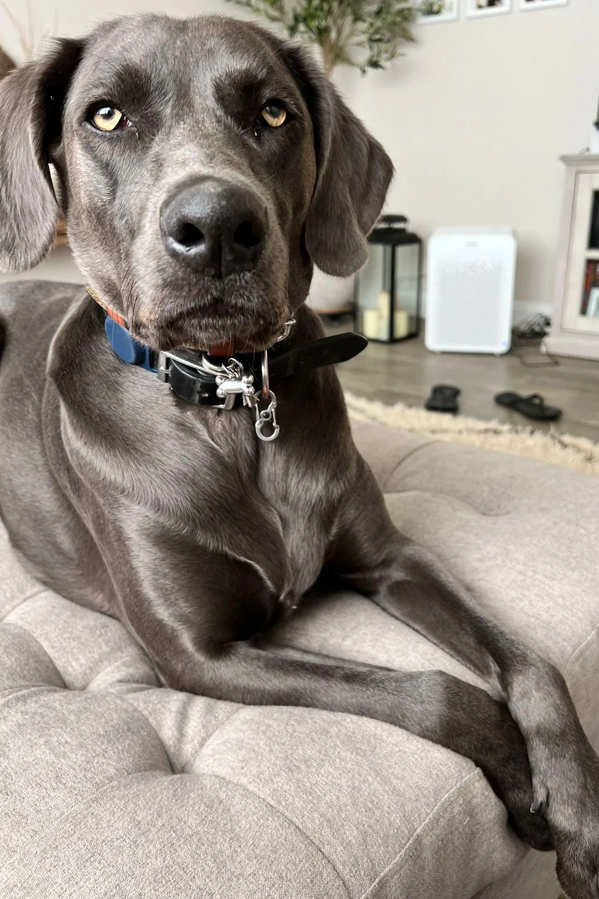 Weimaraners are intelligent, attentive, and deeply connected to their people, qualities that mirror the values of attunement and presence at the heart of our work. Whether offering a quiet moment of grounding or simply providing a friendly greeting, Troy helps foster connection, ease, and community.